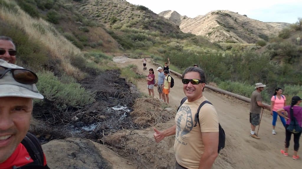 We start with a 1/4 mile walk from where we park along Cottonwood Dr, to the trail head. There we make a left and take a relatively flat section and hike for about 3/4 mile. We’ll come to the same tar pits as the Tapo Canyon tar pit hike, and then continue for another 300 feet to a fire road.