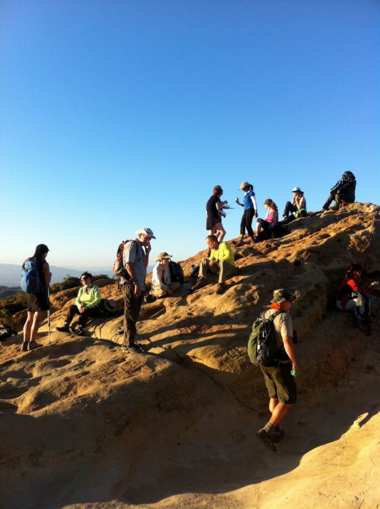 The climb out of Garapito Canyon will bring us to our detination: Eagle Rock, the most impressive landmark in all of Topanga State Park. It will afford us an airy perch overlooking the upper watershed of Santa Ynez Canyon and the ocean beyond. We will snack and explore on this impressive sandstone rock covered with crevices and caves.