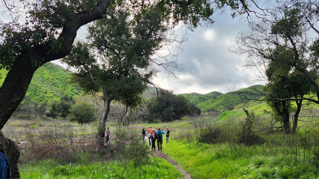 After the potluck, we’ll continue up Hawk Canyon in our clockwise loop for 0.6 mile where the trail ends back at the Western Plateau trail. Take a left up the hill back to Conejo Center Dr. For those that came on the easier option, it’s a return the way you came.