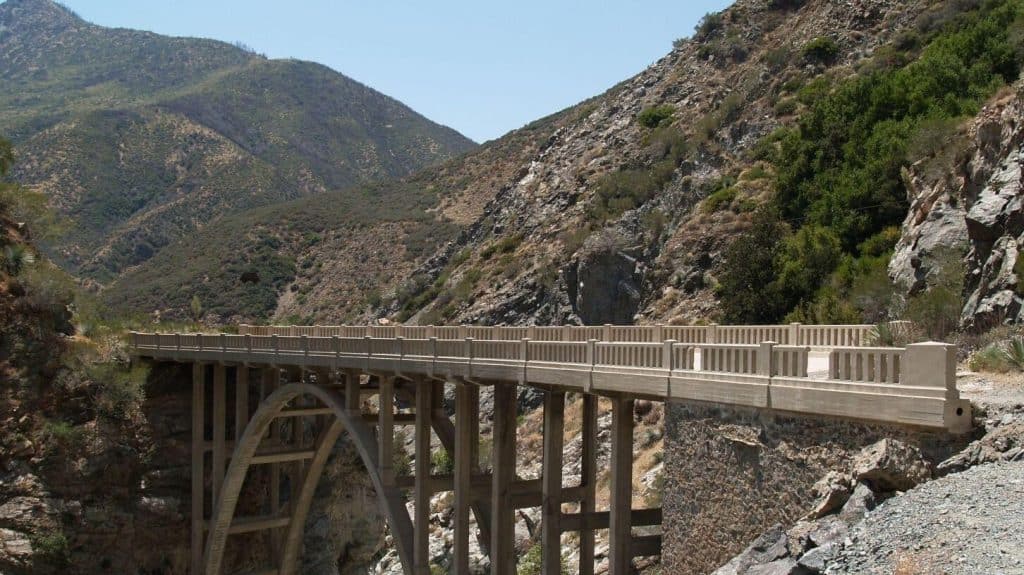 This is one of the must-do hikes in Los Angeles: a moderate, 9 miles (round trip) hike to one of the most interesting places of the San Gabriel Mountains. Bridge do Nowhere is a bridge located literally in the middle of nowhere in the Sheep Mountain Wilderness. The bridge was built in 1936, when they were building a road connecting the San Gabriel Valley and Wrightwood. However, a massive flood in 1938 due to extremely heavy rain, destroyed the road-in-construction, so they decided to abandon the project, leaving a perfectly finished bridge lost in the middle of nowhere. Now a company called Bungee America owns the land and does bungee jumping off the 100 foot bridge.