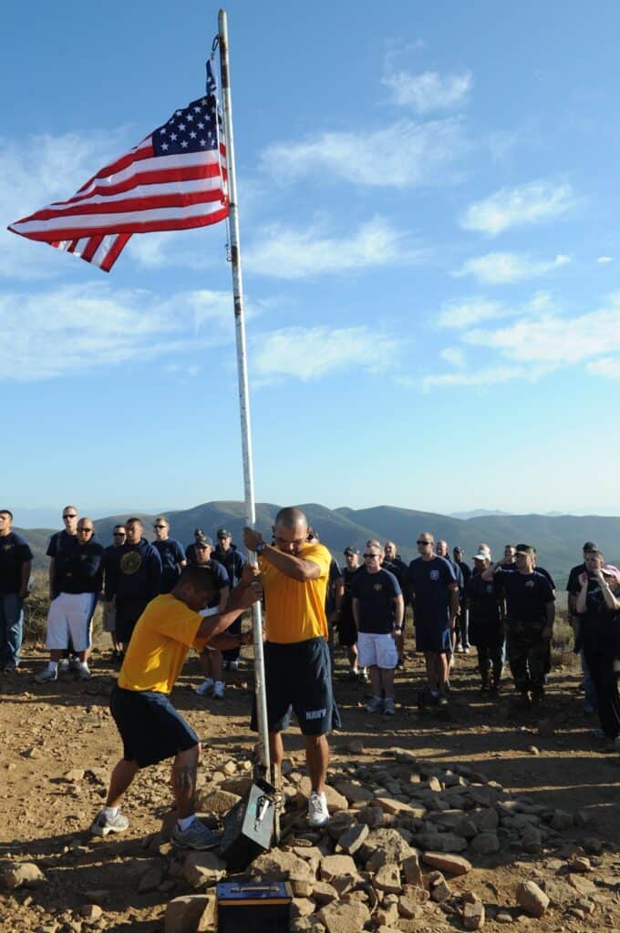 After we climb the Chumsh Trail we’ll swing around the Pt Mugu Peak Trail and bag Mugu Peak. We’ll take a group photo at the flag pole. Every year on 9/11, since 2002, chief selects from the Naval Base Ventura County replace the flag on Mugu Peak. The previous flag is retired in a ceremony on the base.
