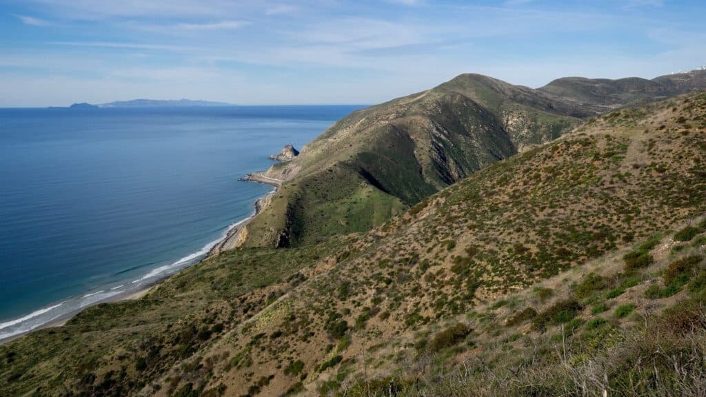 Consider the walk along PCH a warmup to the strenuous Chumash Trail. The Chumash trail is an ancient trail which leads from the Pacific Ocean to La Jolla Valley. It was used by the Chumash 7000 years ago, and believed to be the oldest trail still in continuous use in the Santa Monica Mountains.