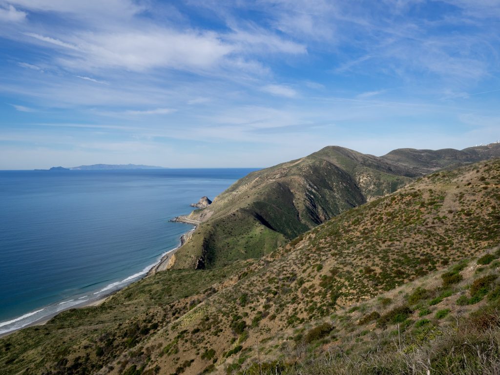 Consider the walk along PCH a warmup to the strenuous Chumash Trail. The Chumash trail is an ancient trail which leads from the Pacific Ocean to La Jolla Valley. It was used by the Chumash 7000 years ago, and believed to be the oldest trail still in continuous use in the Santa Monica Mountains.