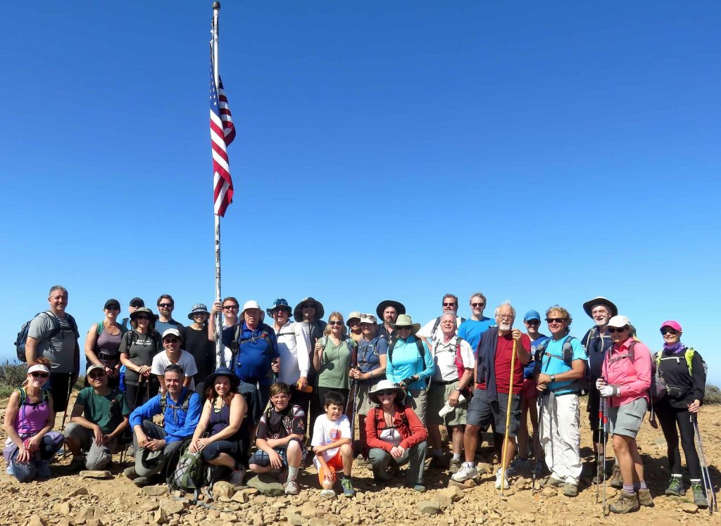 After we climb the Chumsh Trail we’ll swing around the Pt Mugu Peak Trail and bag Mugu Peak. We’ll take a group photo at the flag pole. Every year on 9/11, since 2002, chief selects from the Naval Base Ventura County replace the flag on Mugu Peak. The previous flag is retired in a ceremony on the base.