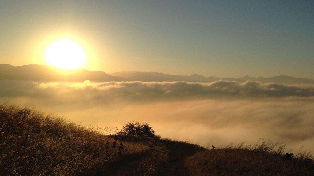 The hike ascends to Mission Point, aka Mission Peak, via the Mario A DeCampos Trail. The peak is the second highest summit in the Santa Susana mountain range behind Oat Mountain. This trail meanders up a beautiful ridge through walnut and oak groves and open grassland, providing broad views of the San Fernando Valley and its surrounding mountains. Just before reaching Mission Peak the trail takes a series of switchbacks, which Don T calls the “Stacked Rock Switchbacks” and pass the trees locally known as “Three Trees.” This is an out and back hike and while there are a few more steep areas most of the elevation gain is spread throughout the hike. The trail is a nice fire road with no steep drop offs. It can be windy at times or at certain areas of the trail. During late afternoon hikes, the hills cast a shadow on the trail. So, no need to wear a headgear or put on sunscreen for the hike.
