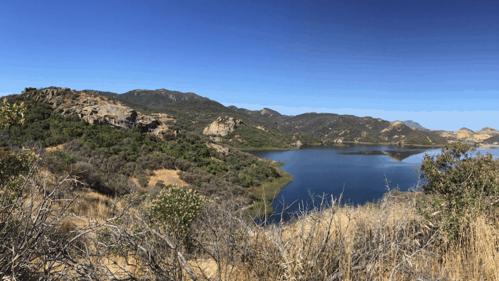 We’ll do the regular Pentachaeta Trail loop plus some additional distance in order to tack on extra mileage to this 2.8 mile loop. This trek offers views of Westlake Village and its lake as well as the Las Virgenes Reservoir