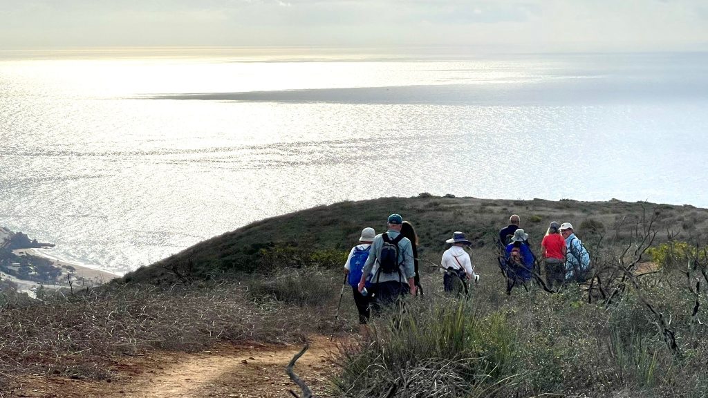 The trail is an awesome blend of ocean and mountain views in Malibu’s La Jolla Canyon. We will start from the trailhead which follows the canyon eastward, away from the ocean. Then, it quickly brings you back toward the ocean at a gradual incline. There’s a great lookout spot where it gives you a breathtaking view of the Pacific Coast Highway against the backdrop of the Pacific Ocean, with sweeping views toward Mugu Rock on the west and Sycamore Cove on the east. After another peak, you’ll start a slight decline that brings you to the fire road where we will turn around. Along the way, we’ll be treated to magnificent sweeping views of La Jolla and Big Sycamore Canyons, and of course, the largest ocean in the world. On a clear day, the Channel Islands are easily within sight, although the marine layer has been pretty prominent this summer.
