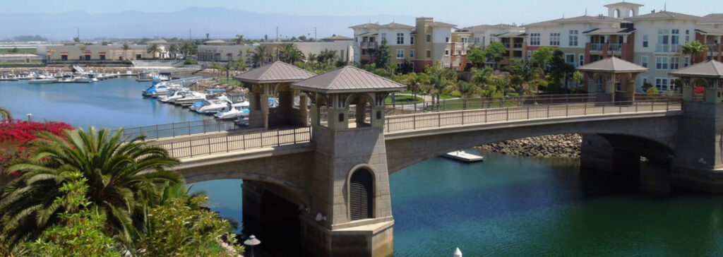 Seabridge Marina (photo- https://arlene4beach.com/seabridge) contains beautifully landscaped parks with pedestrian bridges and walkways. The walkways take you all around the Seabridge Marina and you will enjoy the beautiful landscaping along the sides and scenic harbor.