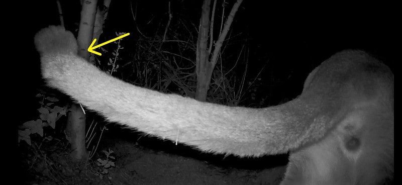 A couple of days later, another male mountain lion, also with a kinked tail, was recorded on a remote camera in the same area. Scientists say there is a possibility that they could be related and perhaps siblings. Recent remote camera footage also shows a third mountain lion in the region also appears to have a kinked tail, documented by remote camera footage taken in the eastern Santa Monica Mountains between the 405 and Hollywood Freeways.